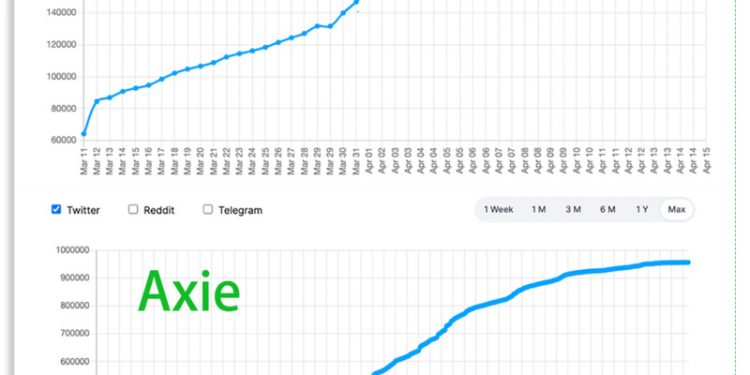 Axie: 2021年7月15日,推特关注数突破20w(截止发稿日2022年4月22日,关注数约为95w)